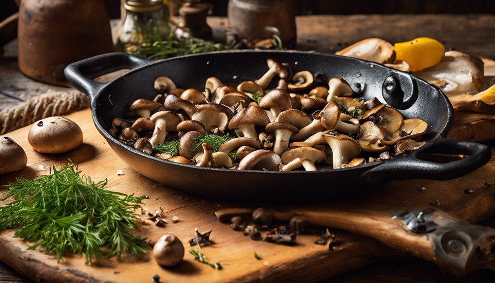 Aby wydobyć pełny smak grzybów, czas smażenia różni się w zależności od rodzaju. Dla chanterelles celuj w 5-7 minut na średnim ogniu, podczas gdy borowiki potrzebują więcej czasu—20-25 minut. Jeśli używasz grzybów ostrygowych, smaż je przez 7-10 minut, a grzyby miodowe potrzebują około 10-12 minut. Upewnij się, że nie przepełniasz patelni, ponieważ prowadzi to do duszenia zamiast smażenia. Użyj mieszanki masła i oleju dla bogatszego smaku i od czasu do czasu mieszaj, aby równomiernie się zrumieniły. Przygotuj się na wzbogacenie swoich potraw z grzybami, ponieważ jest jeszcze więcej do odkrycia na temat technik i wskazówek, które mogą podnieść twoje doświadczenie kulinarne.