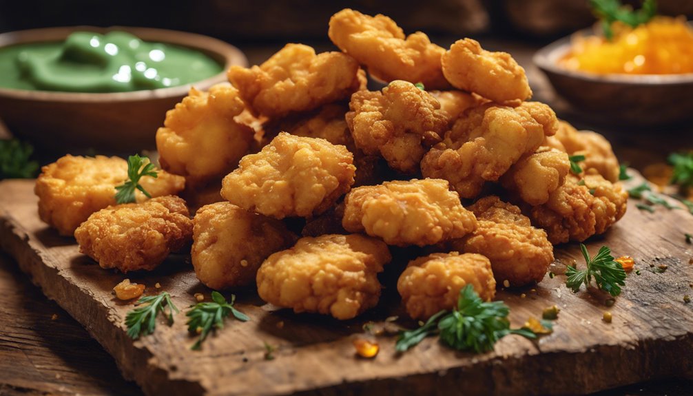 Aby uzyskać idealny złoty kolor na twoich smażonych nuggetach, będziesz chciał smażyć je przez około 3-4 minuty z każdej strony. Upewnij się, że twój olej jest gorący, najlepiej w zakresie 180-200°C (356-374°F), ponieważ to pomaga osiągnąć chrupiącą skórkę. Nie przepełniaj patelni; smażenie w małych partiach zapewnia równomierne smażenie. Uważaj na nie, delikatnie przewracając je szczypcami, aby zapobiec ich łamaniu. Gdy będą pięknie złote, odsącz nadmiar oleju na ręcznikach papierowych, aby zachować ich chrupkość. Zostań z nami, a odkryjesz jeszcze więcej wskazówek, jak osiągnąć doskonałość nuggetów.