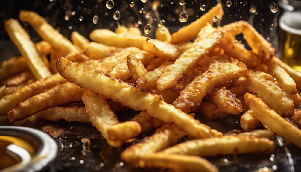 Aby Twoje ziemniaki były chrupiące, będziesz chciał smażyć je w głębokim oleju w dwóch temperaturach. Zacznij smażyć w 170°C przez około 5-7 minut, aby je zmiękczyć, bez brązowienia. Następnie zwiększ temperaturę do 190°C i smaż przez dodatkowe 3-4 minuty, aż staną się złote i chrupiące. Ważne jest, aby monitorować temperaturę oleju, aby zapobiec tłustości lub przypaleniu. Kiedy zastosujesz ten dwustopniowy proces, osiągniesz idealny chrup. Jeśli szukasz więcej wskazówek, aby poprawić swoje umiejętności smażenia, jest wiele do odkrycia.